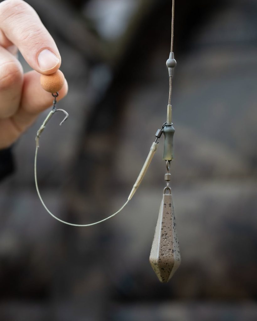 Груз стоит на оси лески/лидкора. При поклёвке карп тянет, упирается в груз и чаще сам “садится”.