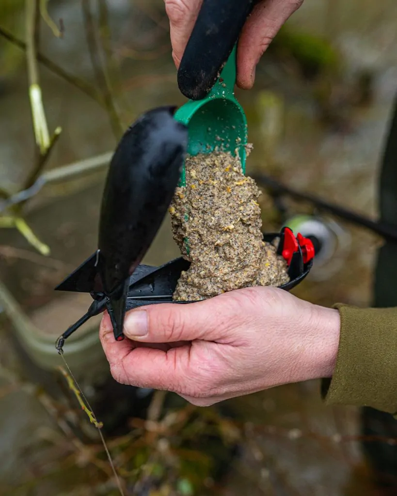 Главное отличие — прикормка должна зависать в толще воды, а не лежать на дне. Для этого её замешивают до состояния жидкой сметаны или даже «супа». При ударе о воду такая смесь создаёт муть, которая медленно опускается, привлекая рыбу визуально и по запаху.